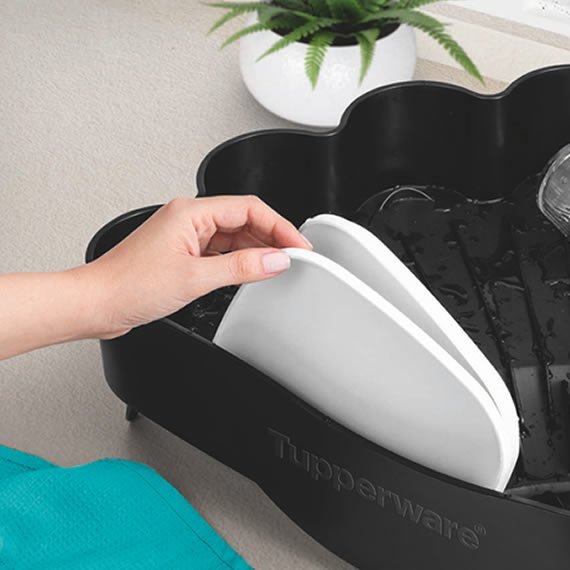 O Escorredor de Louças Preto Tupperware é o produto ideal para manter a pia da sua cozinha mais organizada. Compacto e espaçoso, ele possui um design único e exclusivo com inclinação adequada para a drenagem da água que escorre da louça direto para a cuba da pia. Além disso o Escorredor de Louças Preto Tupperware acomoda pratos, tampas, copos e talheres separadamente deixando sua pia sempre limpa, seca e bem organizada. Facilidades e praticidade no seu dia a dia.
