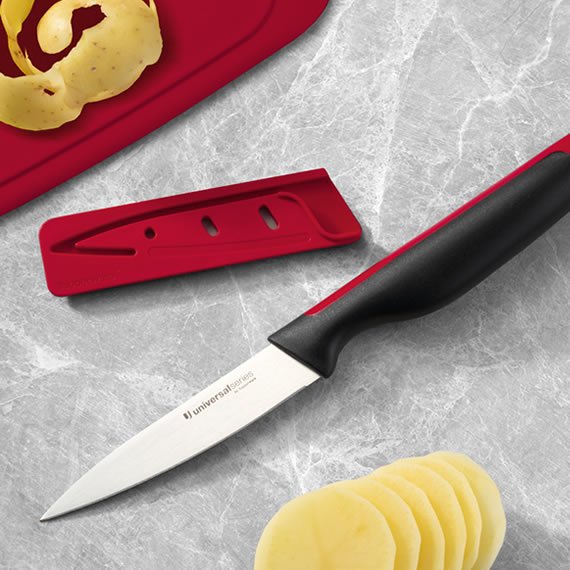 A Faca Utilitária Universal Series Tupperware é o produto ideal para cortes precisos até nos alimentos menores. Além disso vem com uma capa que protege o fio da lâmina e garante segurança no manuseio.