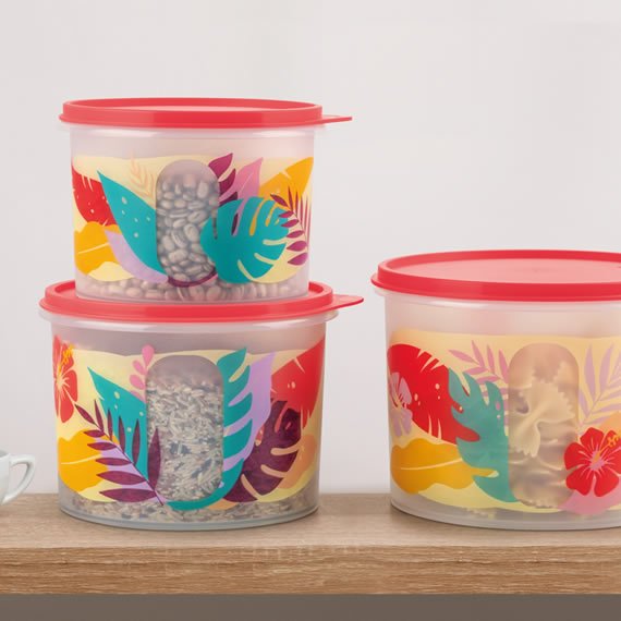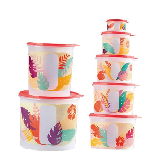 O Kit Tupper Caixas Views Tropical é ideal para armazenar os seu alimentos. Além de deixar a sua cozinha muito mais organizada. Além disso a decoração dará um toque tropical na sua cozinha com as cores da estação. O kit é composto por: