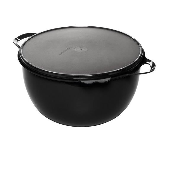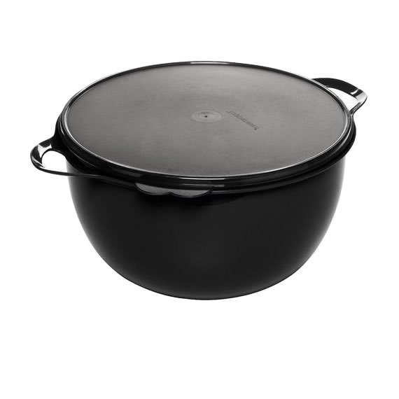A Mega Criativa Tupperware Preta 10 Litros é ideal para o preparo de diversas receitas daquelas para as quais você precisa de espaço para misturar bem. Apresenta alças laterais que auxiliam a segurar o produto enquanto você utiliza ou transporta. Podem ser colocadas uma dentro da outra, otimizando espaço no seu armário.