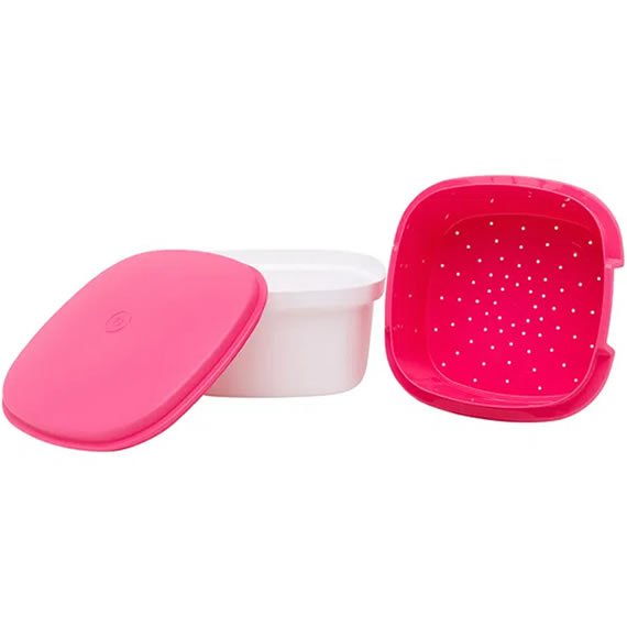 A Múltipla Rosa 2.5L Tupperware foi desenvolvida para facilitar o seu dia a dia no preparo de suas receitas. Esse item é ideal para o cozimento dos mais diversificados alimentos, desde bolos, macarrão até legumes no vapor. Composta por uma base, uma tampa de proteção e um escorredor, a Múltipla permite que o caldo ou a água do alimento se acumule no espaço entre o escorredor e a base da peça.