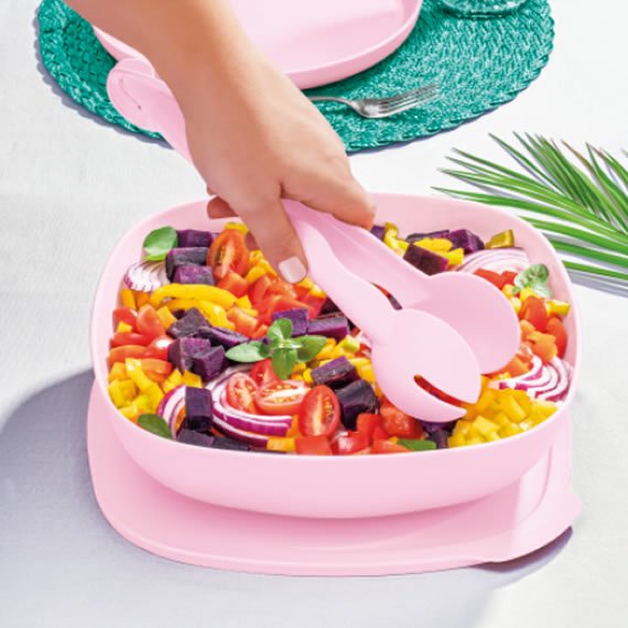 O Pegador Murano Rosa Tupperware pode ser usados juntos ou separados, você escolhe. Se encaixar os 2 você tem um pegador de salada!