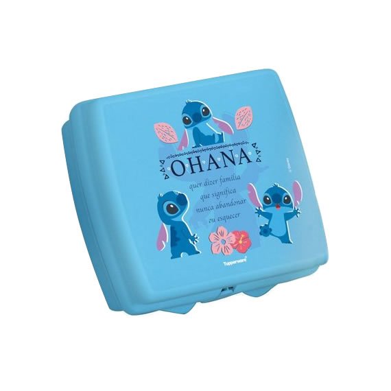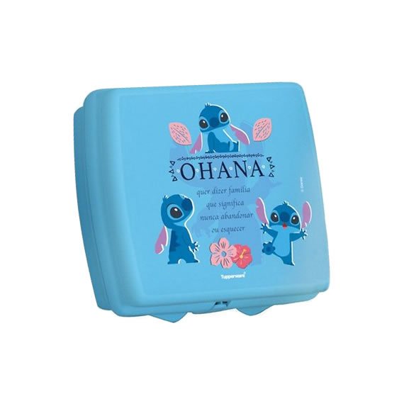 O Porta Sanduíche Stitch Tupperware é ideal para transportar lanches, sem o risco de amassar ou danificar o alimento. Ele também possui uma trava de segurança, que impede que ele abra dentro da sua mala.