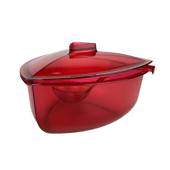 A Tigela Lótus com Concha Vermelho 2.2L é muito versátil na sua cozinha, você pode armazenar seus alimentos, levar a geladeira, freezer, esquentar no micro-ondas e ainda servir com a concha.