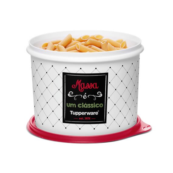 A Tupper Caixa Massa 2.4L Bistrô com tampa vermelha e base branca, é a peça ideal para armazenar seus alimentos por muito mais tempo e deixará a sua cozinha muito mais moderna e divertida. A decoração é exclusiva e transmite exatamente o que você irá encontrar na caixa. É fácil de organizar, pois a tampa de excelente vedação se encaixa com as outras peças da linha, podendo assim, serem empilhadas.