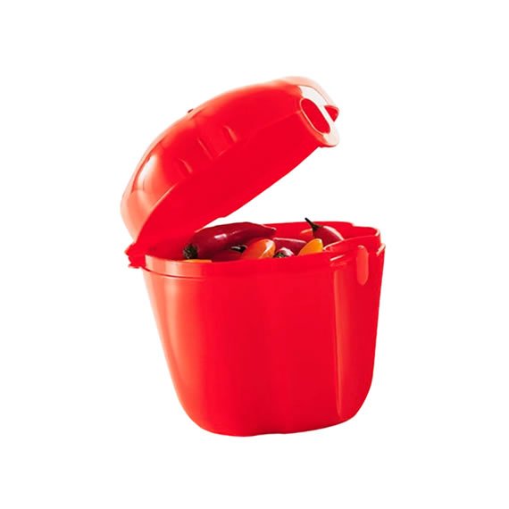 O Tupper Pimenta foi desenvolvido com o ideal de evitar que o odor do alimento fique pelo refrigerador, mantendo assim fresco por muito mais tempo. Sua cor e design evitam o surgimento de possíveis manchas. Com formato anatômico, o item auxilia a economizar espaço no refrigerador. Possui travas na tampa que ajudam a conservar o alimento mantendo o seu aroma e sabor.