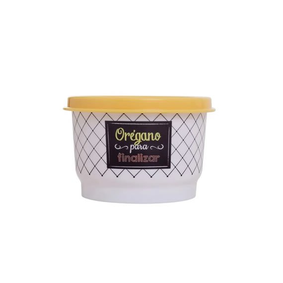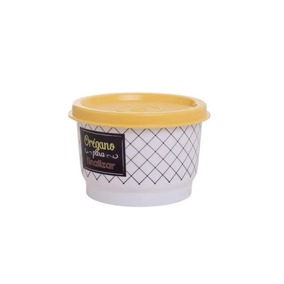 O Tupper Potinho Orégano 140ml Bistrô é Ideal para você para armazenar por muito mais tempo, conservando o aroma e deixando a sua cozinha muito mais moderna e divertida. A decoração é exclusiva e transmite exatamente o que você irá encontrar no produto. É fácil de organizar, pois a tampa de excelente vedação se encaixa com os outros produtos da linha, podendo assim, serem empilhados.