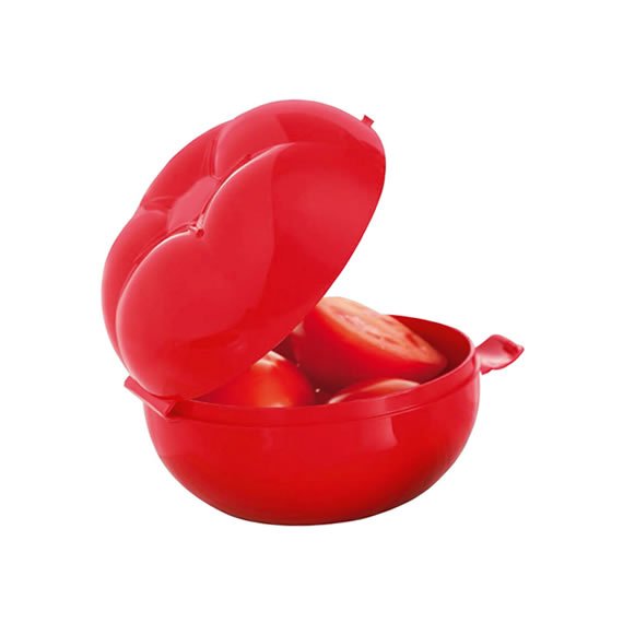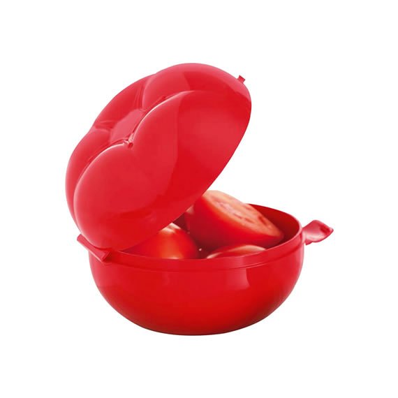 O Tupper Tomate foi desenvolvido com o ideal de evitar que o odor do alimento fique pelo refrigerador, mantendo assim fresco por muito mais tempo. Sua cor e design evitam o surgimento de possíveis manchas. Com formato anatômico, o item auxilia a economizar espaço no refrigerador. Possui travas na tampa que ajudam a conservar o alimento mantendo o seu aroma e sabor.