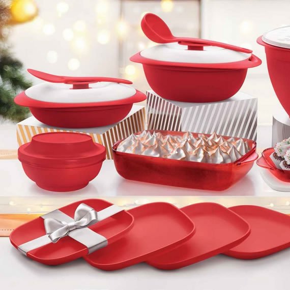 O Tupperware PDA Natal Mágico 10 Peças é ideal para servir suas refeições. É composto por: