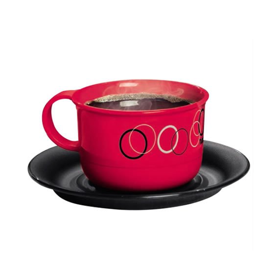 A Xícara Tupperware Círculos Vermelha 150ml conta com decoração exclusiva para deixar o seu café da manhã ainda mais especial.